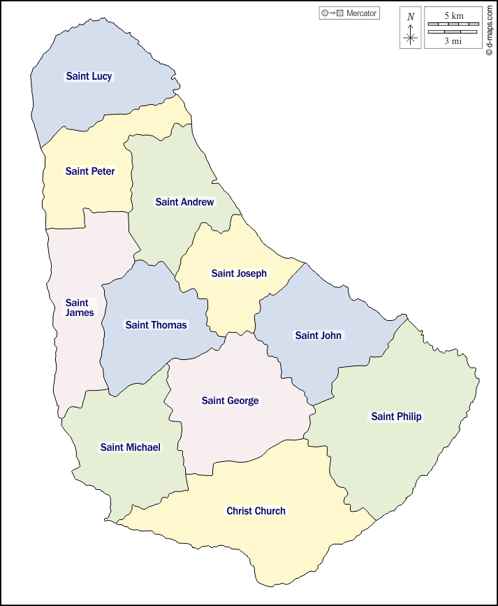 d-maps > महाअमेरिका > बारबाडोस > तटों, पारिशों, नाम, रंग, सफेद
