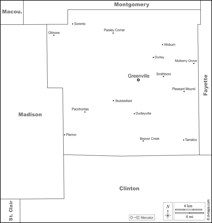 d-maps > संयुक्त राज्य > इलिनॉय > बॉन्ड काउंटी > सीमाओं, मुख्य शहरों, नाम, सफेद