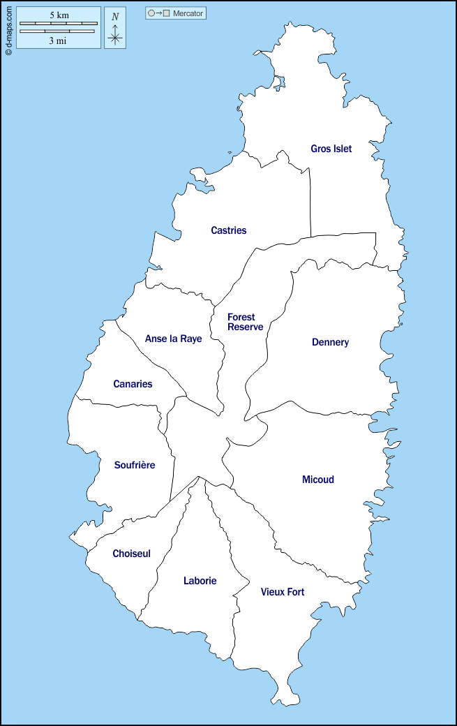 d-maps > महाअमेरिका > सन्त लूसिया > तटों, पड़ोस, नाम