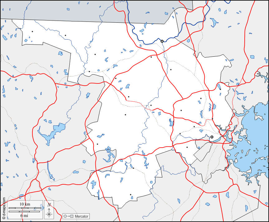 d-maps > संयुक्त राज्य > मैसाचुसेट्स > मिडलसेक्स काउंटी > सीमाओं, जल-सर्वेक्षण, मुख्य शहरों, सड़कों