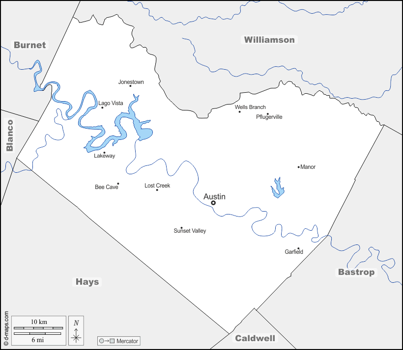 d-maps > संयुक्त राज्य > टेक्सास > ट्रैविस काउंटी > सीमाओं, जल-सर्वेक्षण, मुख्य शहरों, नाम