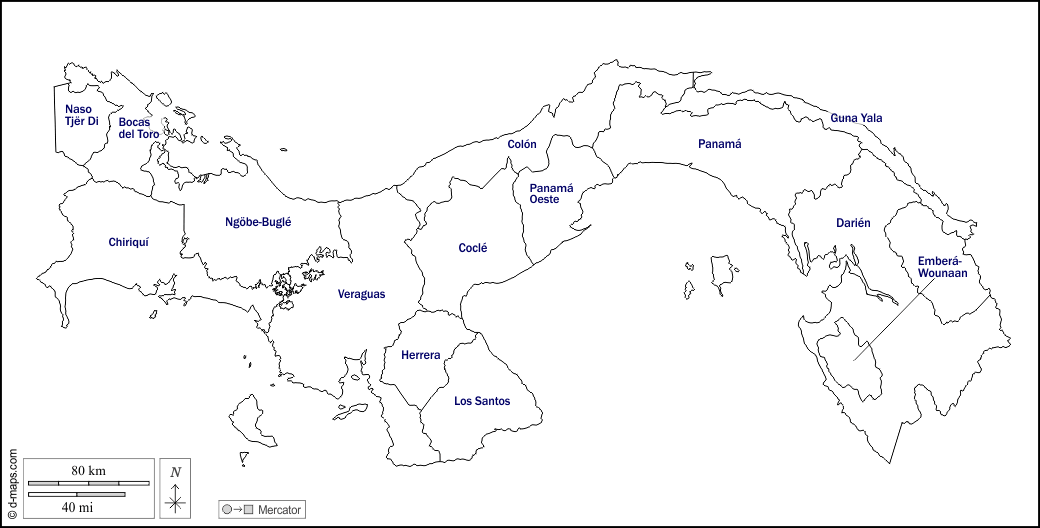 d-maps > महाअमेरिका > पनामा > बाह्यरेखा, प्रांतों, नाम, सफेद