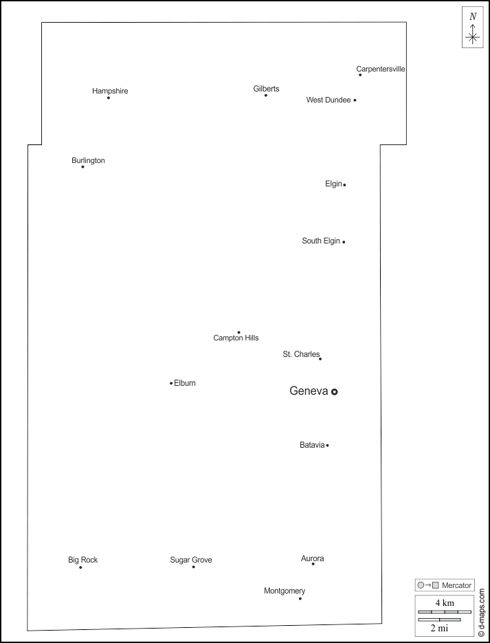 d-maps > संयुक्त राज्य > इलिनॉय > केन काउंटी > बाह्यरेखा, मुख्य शहरों, नाम, सफेद