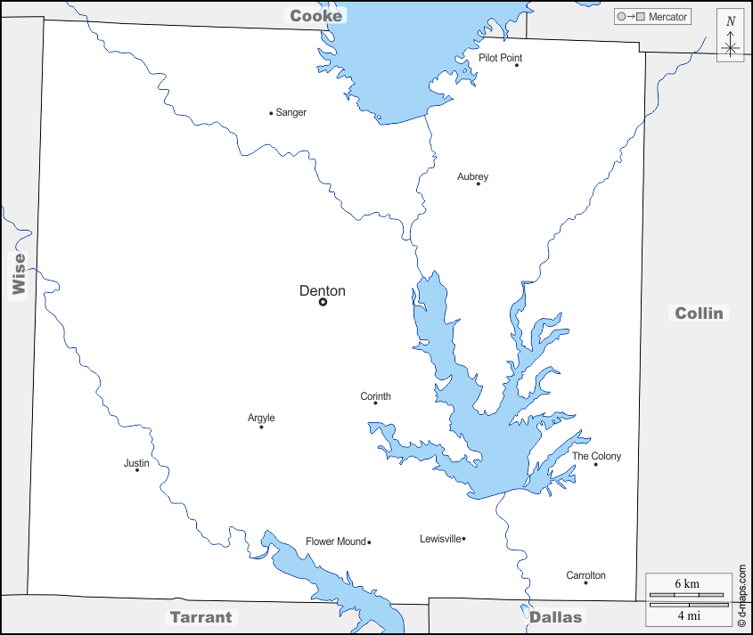 d-maps > संयुक्त राज्य > टेक्सास > डेंटन काउंटी > सीमाओं, जल-सर्वेक्षण, मुख्य शहरों, नाम