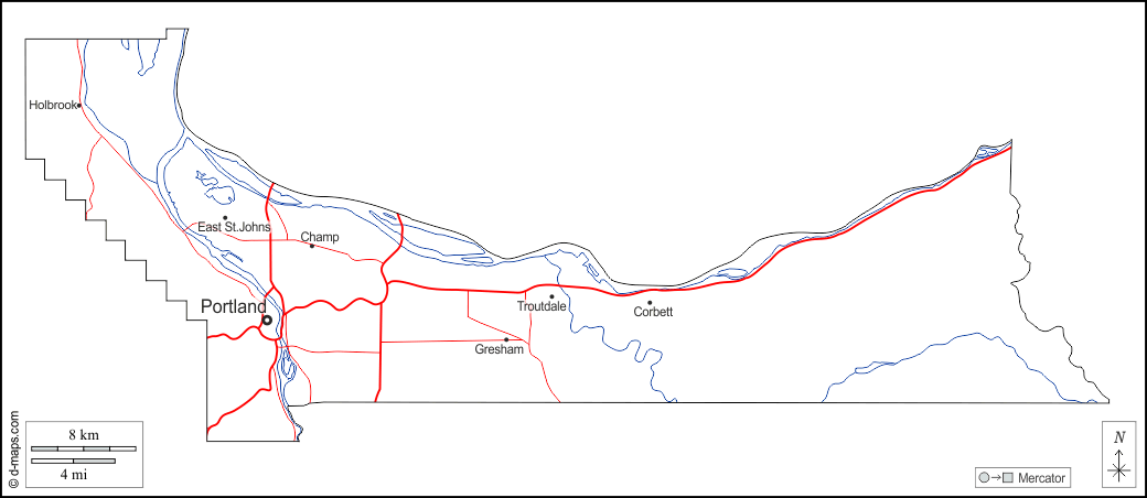 d-maps > संयुक्त राज्य > औरिगन > मल्टानोमा काउंटी > बाह्यरेखा, जल-सर्वेक्षण, पड़ोस, सड़कों, नाम, सफेद