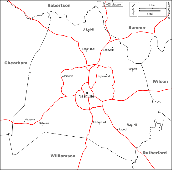 d-maps > संयुक्त राज्य > टेनेसी > डेविडसन काउंटी > सीमाओं, पड़ोस, सड़कों, नाम, सफेद