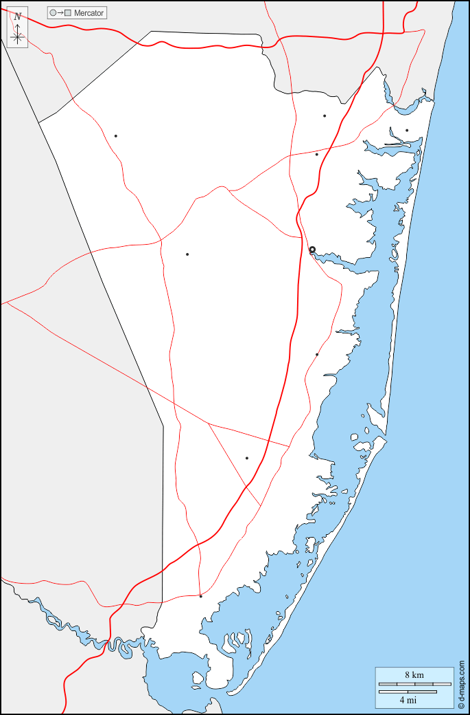 d-maps > संयुक्त राज्य > न्यू जर्सी > महासागर काउंटी > सीमाओं, मुख्य शहरों, सड़कों