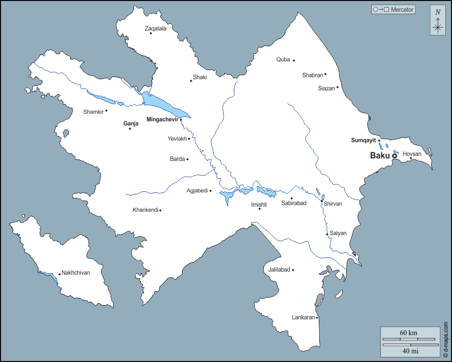 d-maps > एशिया > अज़रबैजान > बाह्यरेखा, जल-सर्वेक्षण, मुख्य शहरों, नाम