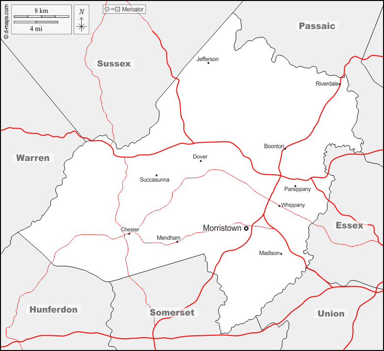 d-maps > संयुक्त राज्य > न्यू जर्सी > मॉरिस काउंटी > सीमाओं, मुख्य शहरों, सड़कों, नाम