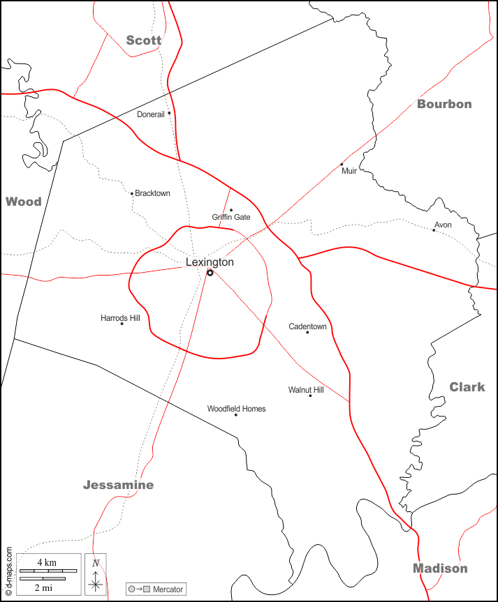 d-maps > संयुक्त राज्य > केंटुकी > फेयेट काउंटी > सीमाओं, पड़ोस, सड़कों, नाम, सफेद