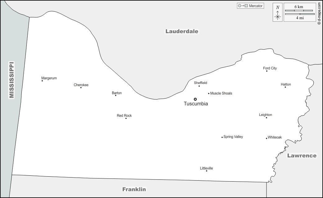 d-maps > संयुक्त राज्य > अलबामा > कोलबर्ट काउंटी > सीमाओं, मुख्य शहरों, नाम