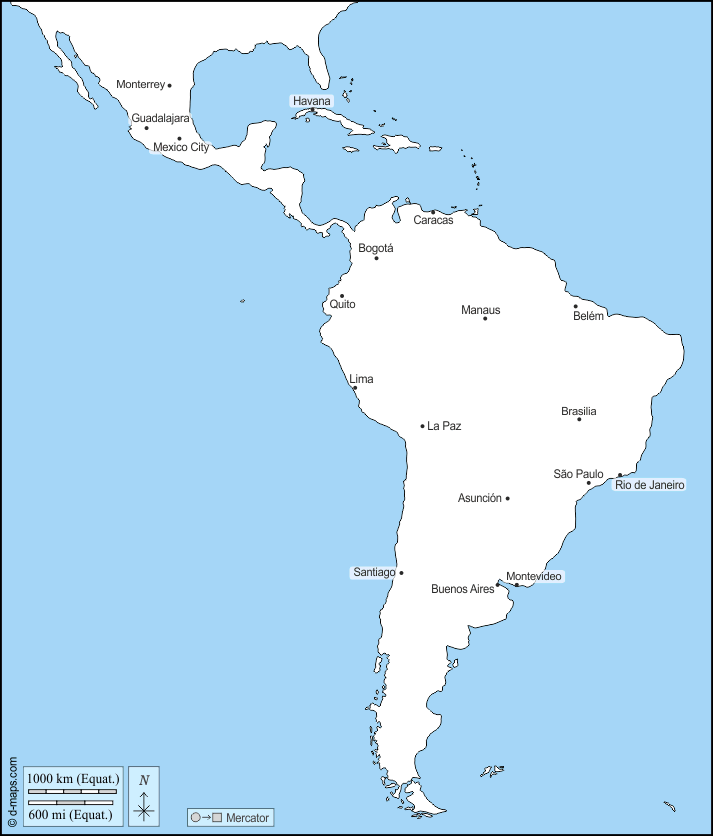 d-maps > महाअमेरिका > लातिनी अमरीका > तटों, मुख्य शहरों, नाम