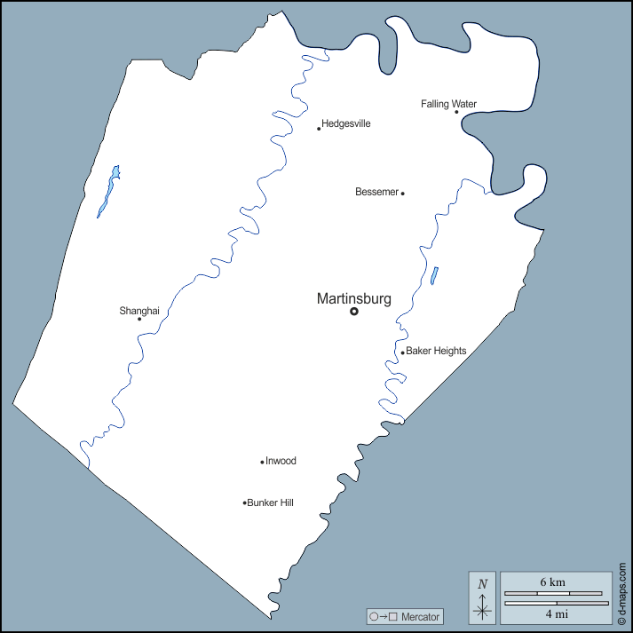 d-maps > संयुक्त राज्य > वेस्ट वर्जीनिया > बर्कले काउंटी > बाह्यरेखा, जल-सर्वेक्षण, मुख्य शहरों, नाम