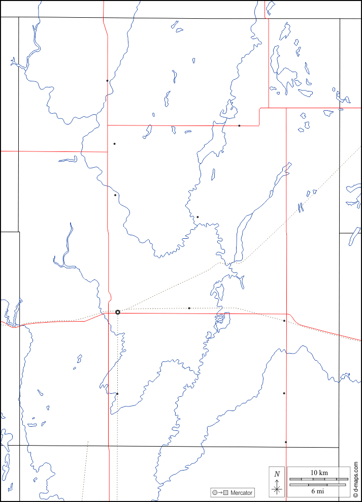 d-maps > संयुक्त राज्य > साउथ डकोटा > ब्राउन काउंटी > सीमाओं, जल-सर्वेक्षण, मुख्य शहरों, सड़कों, सफेद