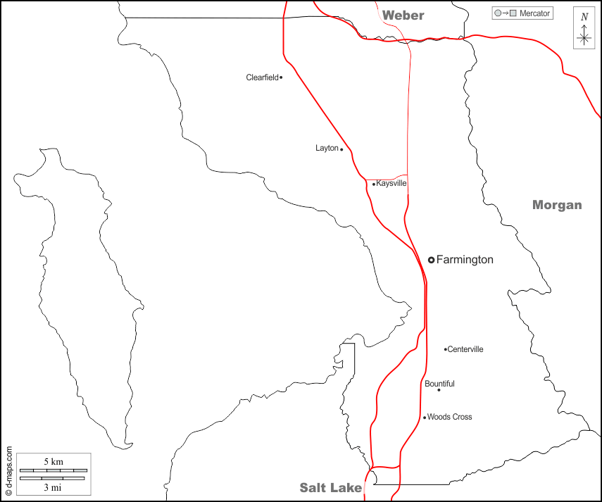 d-maps > संयुक्त राज्य > यूटा > डेविस काउंटी > सीमाओं, मुख्य शहरों, सड़कों, नाम, सफेद