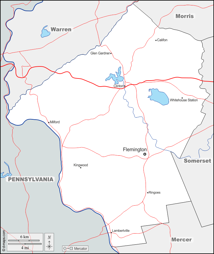 d-maps > संयुक्त राज्य > न्यू जर्सी > हंटरडोन काउंटी > सीमाओं, जल-सर्वेक्षण, मुख्य शहरों, सड़कों, नाम