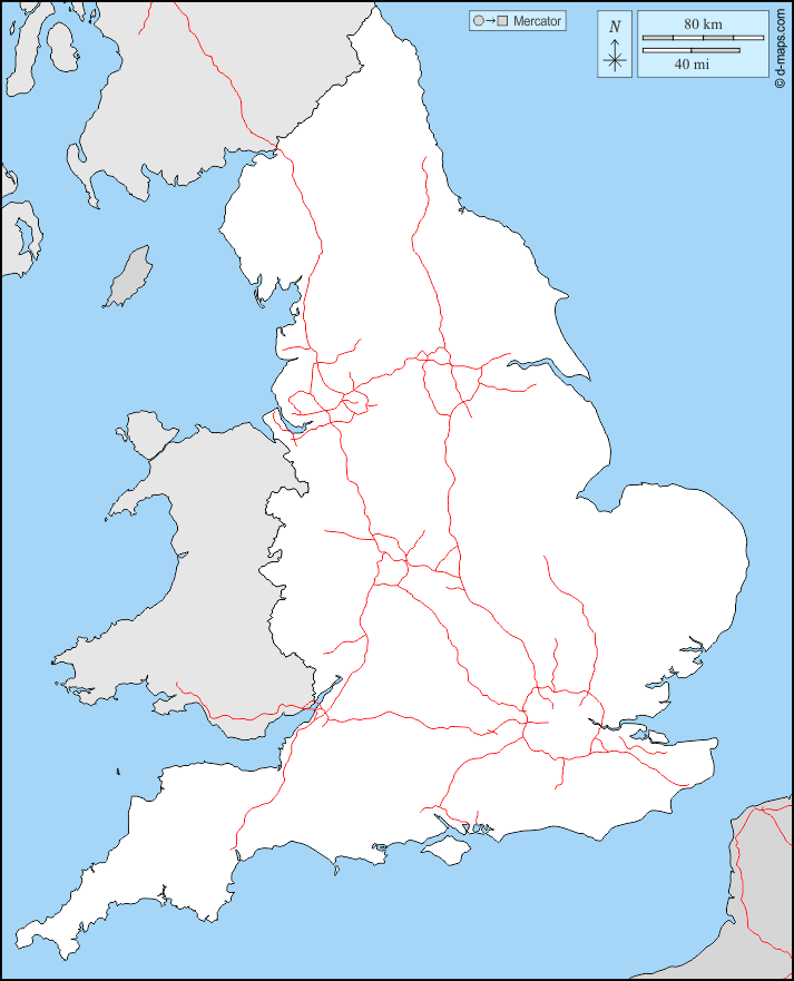 d-maps > यूरोप > युनाइटेड किंगडम > इंग्लैंड > सीमाओं, सड़कों