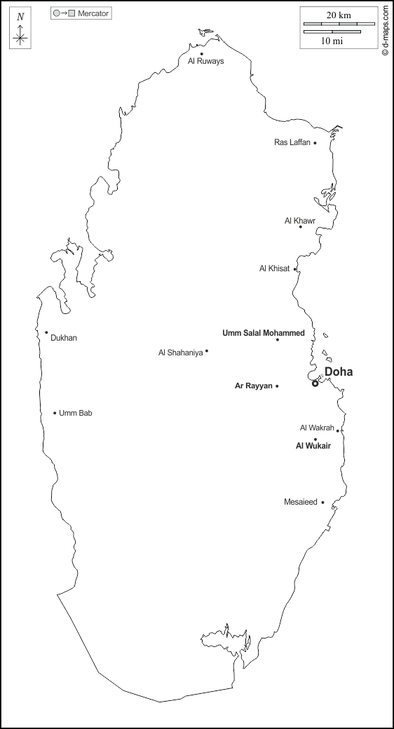 d-maps > एशिया > कतर > बाह्यरेखा, मुख्य शहरों, नाम, सफेद