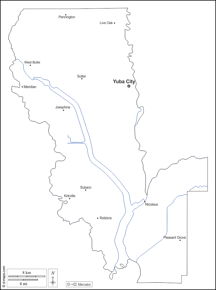 d-maps > संयुक्त राज्य > कैलिफोर्निया > सुटर काउंटी > बाह्यरेखा, जल-सर्वेक्षण, मुख्य शहरों, नाम, सफेद