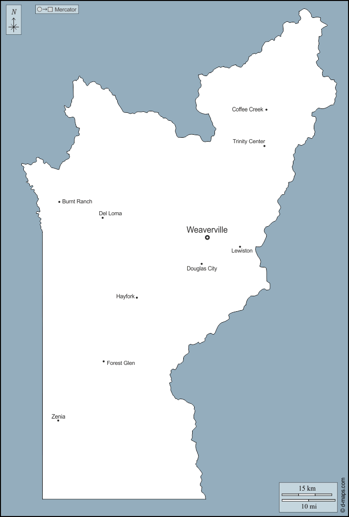 d-maps > संयुक्त राज्य > कैलिफोर्निया > ट्रिनिटी काउंटी > बाह्यरेखा, मुख्य शहरों, नाम