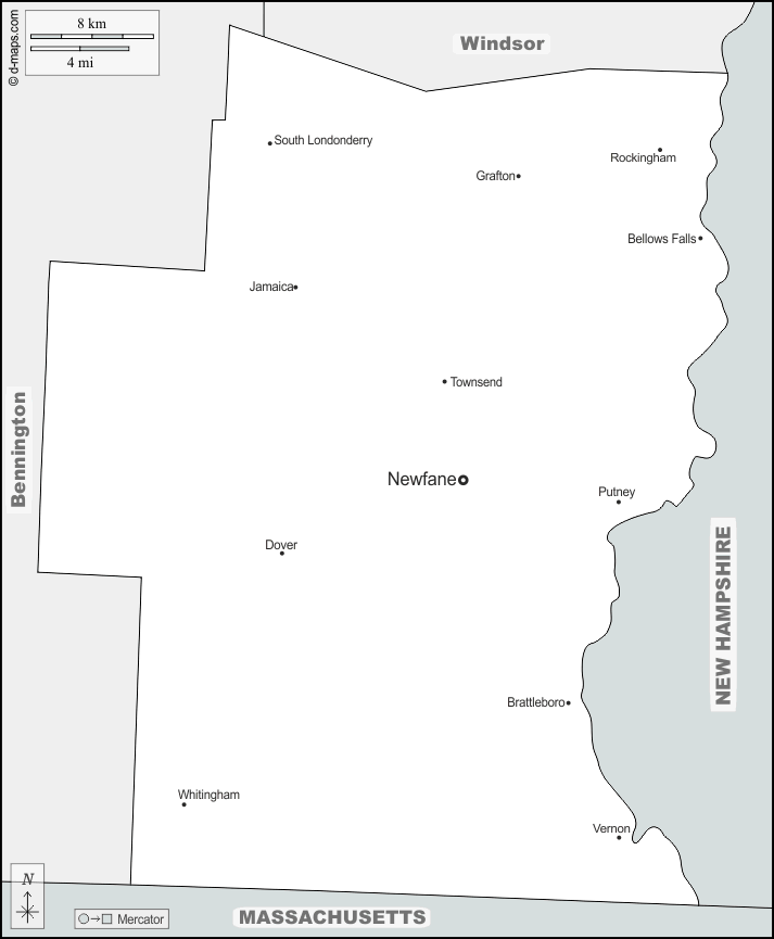 d-maps > संयुक्त राज्य > वरमोंट > विंडहैम काउंटी > सीमाओं, मुख्य शहरों, नाम