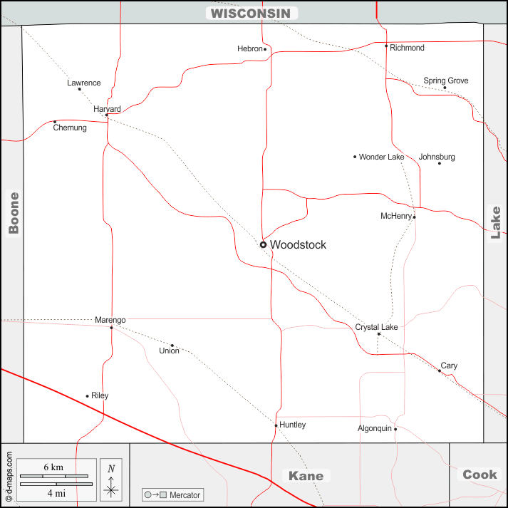 d-maps > संयुक्त राज्य > इलिनॉय > मैकहेनरी काउंटी > सीमाओं, मुख्य शहरों, सड़कों, नाम