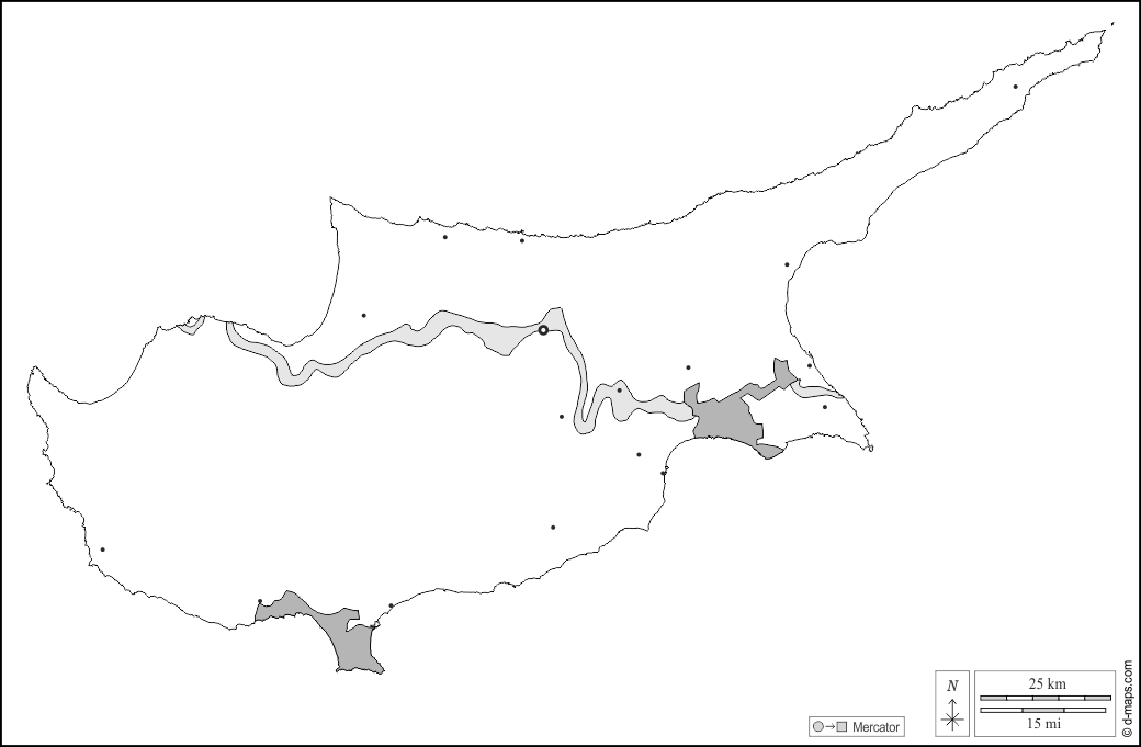 d-maps > यूरोप > साइप्रस > बफ़र ज़ोन, ब्रिटिश संप्रभुता, मुख्य शहरों, सफेद