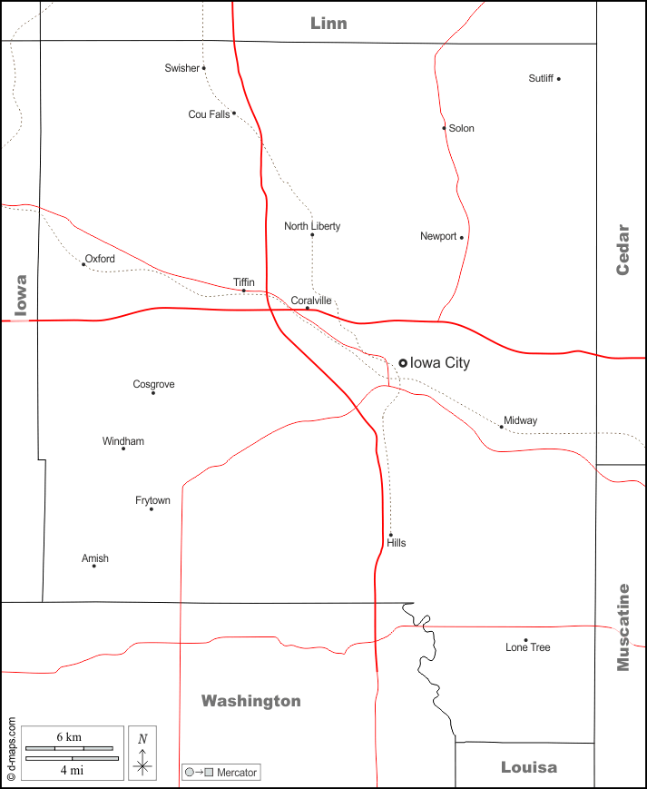 d-maps > संयुक्त राज्य > आयोवा > जॉन्सन काउंटी > सीमाओं, मुख्य शहरों, सड़कों, नाम, सफेद