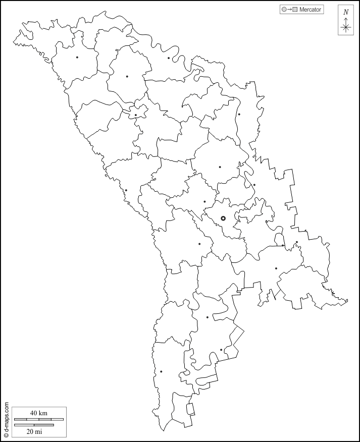 d-maps > यूरोप > मॉल्डोवा > बाह्यरेखा, जिलों, स्वायत्त क्षेत्र, मुख्य शहरों, सफेद