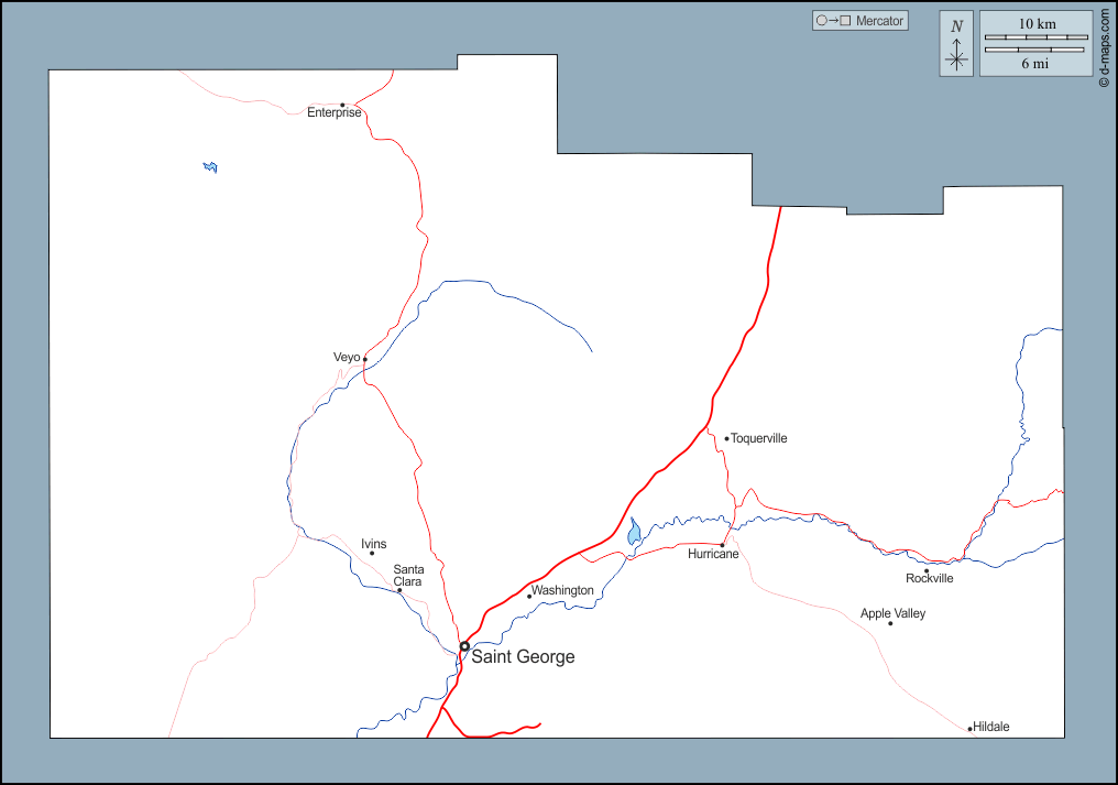 d-maps > संयुक्त राज्य > यूटा > वाशिंगटन काउंटी > बाह्यरेखा, जल-सर्वेक्षण, मुख्य शहरों, सड़कों, नाम