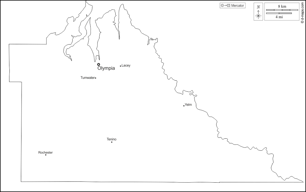 d-maps > संयुक्त राज्य > वॉशिंगटन > थर्स्टन काउंटी > बाह्यरेखा, मुख्य शहरों, नाम, सफेद
