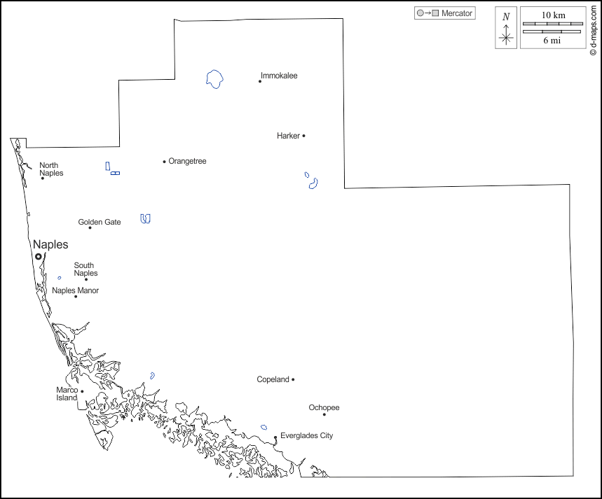 d-maps > संयुक्त राज्य > फ्लोरिडा > कोलियर काउंटी > बाह्यरेखा, जल-सर्वेक्षण, मुख्य शहरों, नाम, सफेद