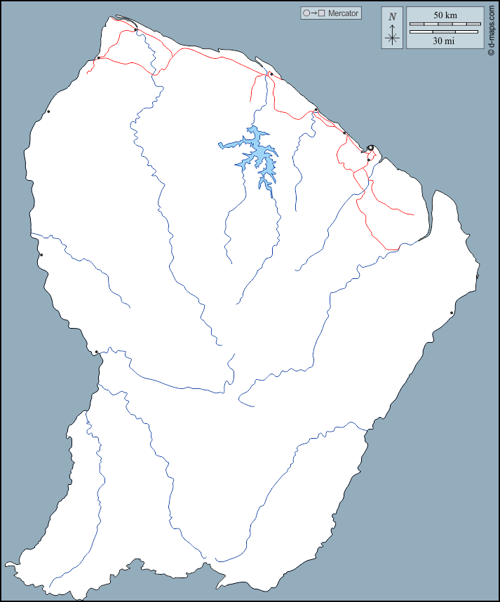 d-maps > यूरोप > फ़्रान्स > फ़्रान्सीसी गुयाना > बाह्यरेखा, जल-सर्वेक्षण, मुख्य शहरों, सड़कों