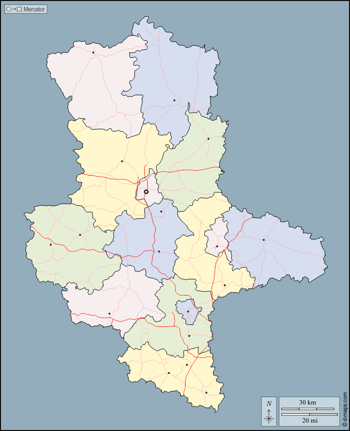 d-maps > यूरोप > जर्मनी > सैक्सोनी-एनहाल्ट राज्य > बाह्यरेखा, जिलों, मुख्य शहरों, सड़कों, रंग