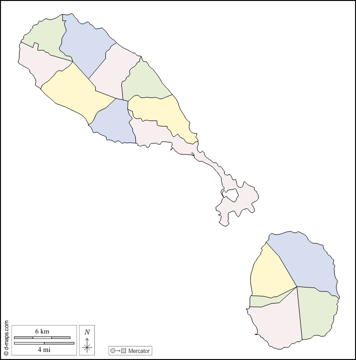 d-maps > महाअमेरिका > सेंट किट्स और नेविस > तटों, पारिशों, रंग, सफेद