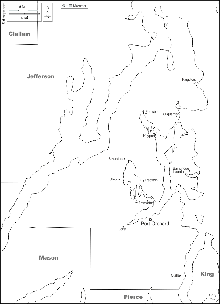d-maps > संयुक्त राज्य > वॉशिंगटन > किट्सप काउंटी > सीमाओं, मुख्य शहरों, नाम, सफेद