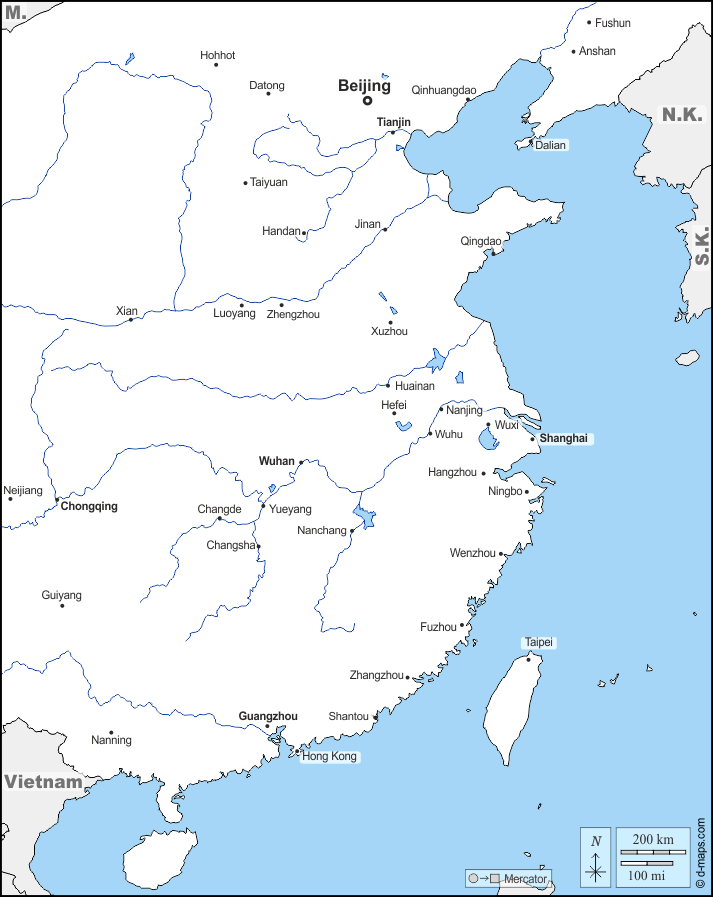 d-maps > एशिया > चीनी जनवादी गणराज्य > पूर्वी चीन > सीमाओं, जल-सर्वेक्षण, मुख्य शहरों, नाम