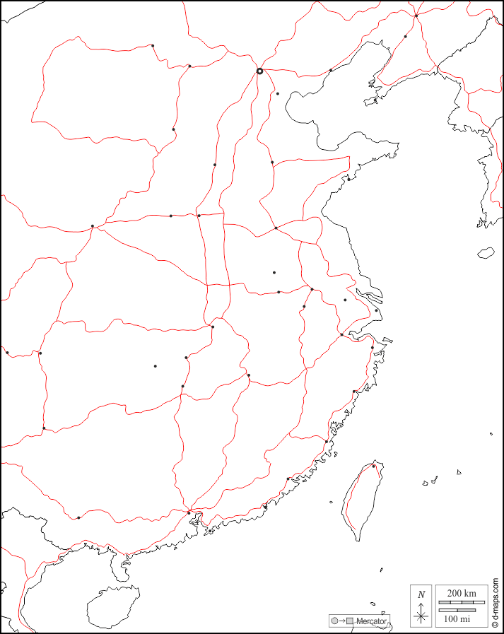 d-maps > एशिया > चीनी जनवादी गणराज्य > पूर्वी चीन > सीमाओं, मुख्य शहरों, सड़कों, सफेद