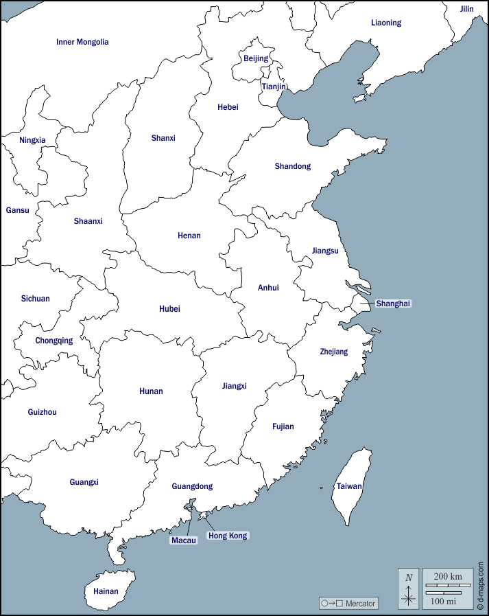 d-maps > एशिया > चीनी जनवादी गणराज्य > पूर्वी चीन > बाह्यरेखा, प्रांतों, नाम