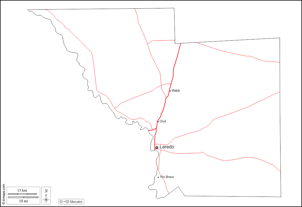 d-maps > संयुक्त राज्य > टेक्सास > वेब काउंटी > बाह्यरेखा, मुख्य शहरों, सड़कों, नाम, सफेद