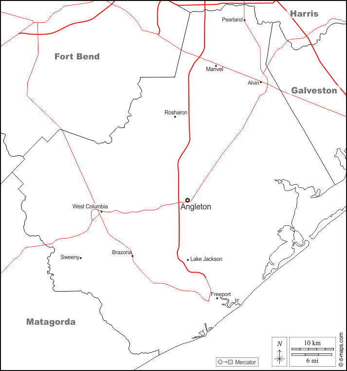 d-maps > संयुक्त राज्य > टेक्सास > ब्रैज़ोरिया काउंटी > सीमाओं, मुख्य शहरों, सड़कों, नाम, सफेद