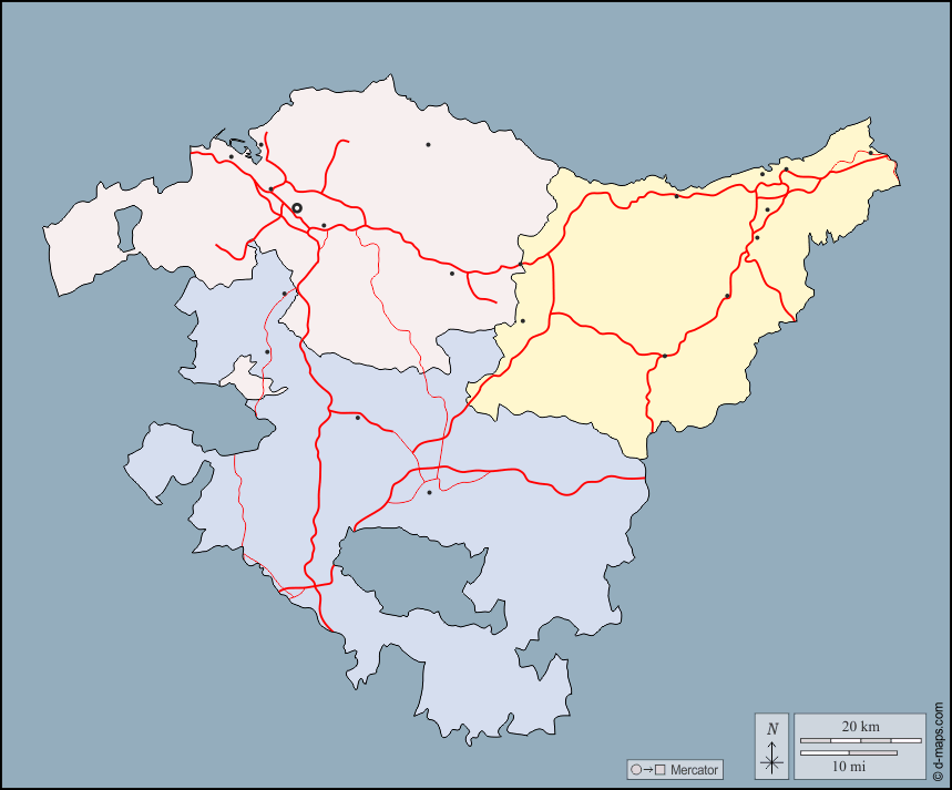 d-maps > यूरोप > स्पेन > बास्क प्रदेश > बाह्यरेखा, प्रांतों, मुख्य शहरों, सड़कों, रंग