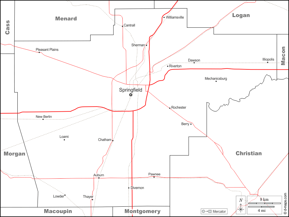 d-maps > संयुक्त राज्य > इलिनॉय > संगमोन काउंटी > सीमाओं, मुख्य शहरों, सड़कों, नाम, सफेद
