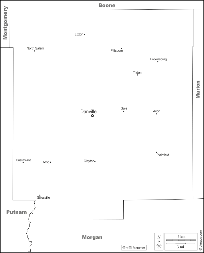 d-maps > संयुक्त राज्य > इंडियाना > हेन्ड्रिक्स काउंटी > सीमाओं, मुख्य शहरों, नाम, सफेद