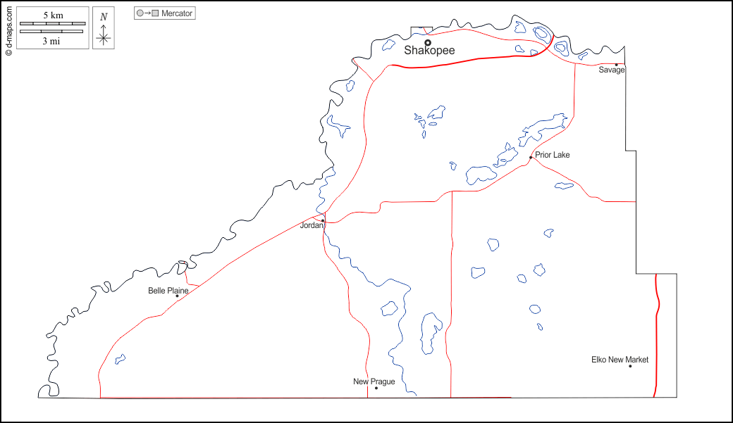d-maps > संयुक्त राज्य > मिनेसोटा > स्कॉट काउंटी > बाह्यरेखा, जल-सर्वेक्षण, मुख्य शहरों, सड़कों, नाम, सफेद