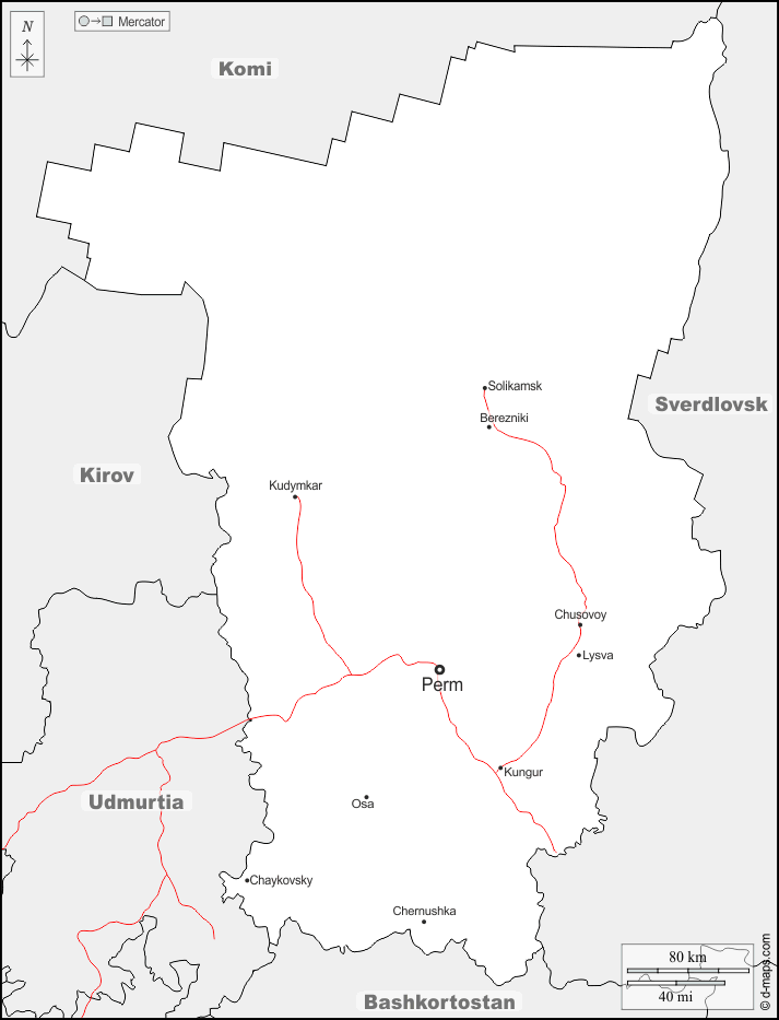 d-maps > यूरोप > रूस > पेर्म क्राय > सीमाओं, मुख्य शहरों, सड़कों, नाम