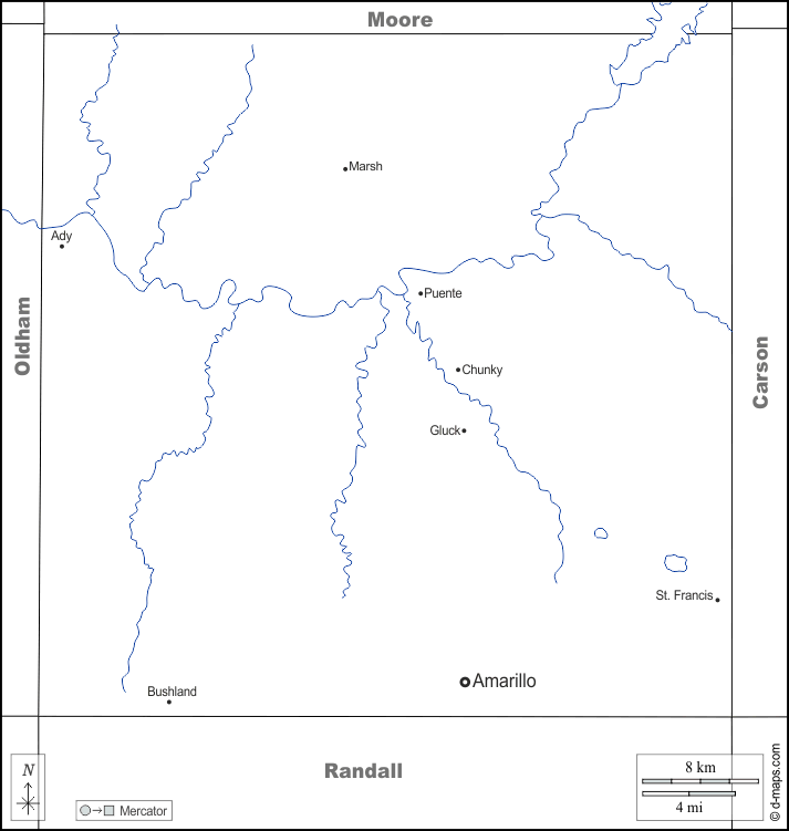 d-maps > संयुक्त राज्य > टेक्सास > पॉटर काउंटी > सीमाओं, जल-सर्वेक्षण, मुख्य शहरों, नाम, सफेद