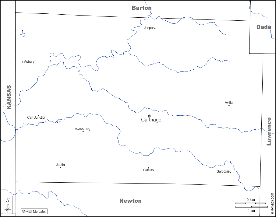 d-maps > संयुक्त राज्य > मिज़ूरी > जैस्पर काउंटी > सीमाओं, जल-सर्वेक्षण, मुख्य शहरों, नाम, सफेद