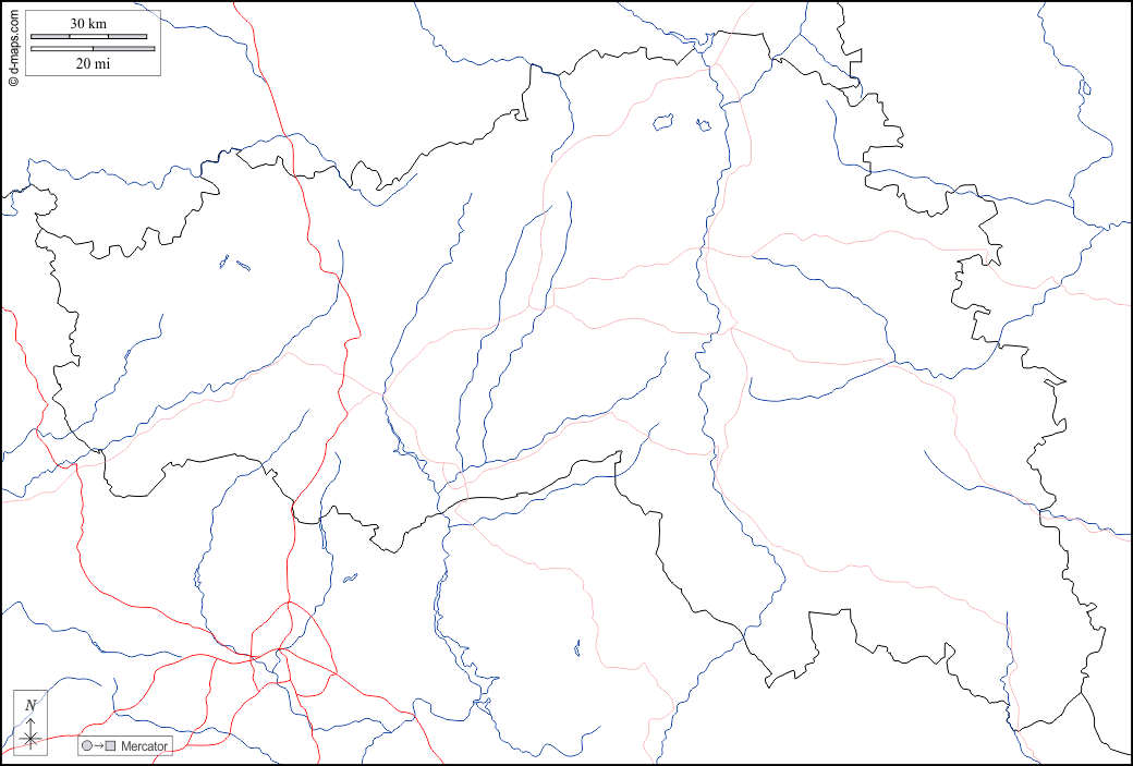 d-maps > यूरोप > रूस > बेल्गोरोद ओब्लास्त > सीमाओं, जल-सर्वेक्षण, सड़कों, सफेद