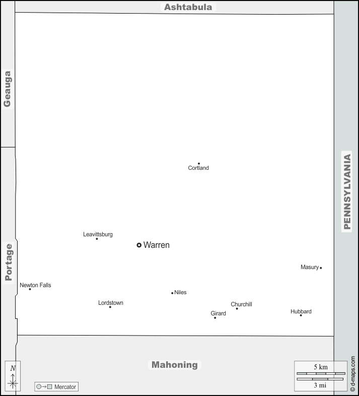 d-maps > संयुक्त राज्य > ओहायो > ट्रंबुल काउंटी > सीमाओं, मुख्य शहरों, नाम